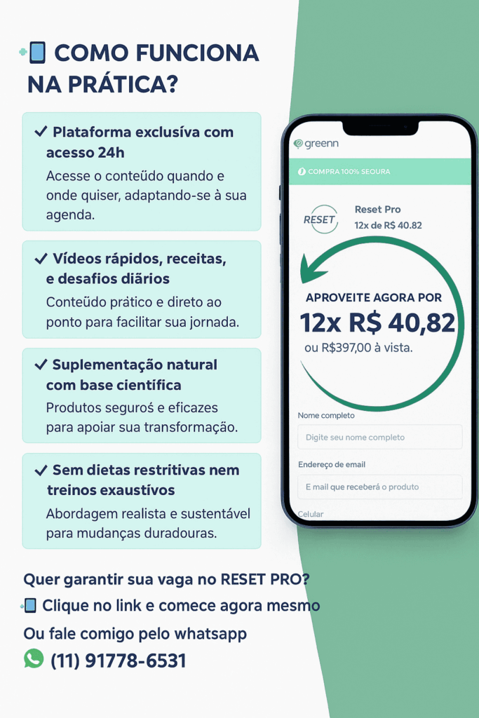ESTA FASE VISA LIMPAR, EQUILIBRAR E PREPARAR O CORPO. OS SUPLEMENTOS ATUAL EM SINERGIA PARA REDIZIR AS INFLAÇÕES, RESTAURA ENERGIA, MELHORA O SONO E OTIMIZA O METABOLISMO.